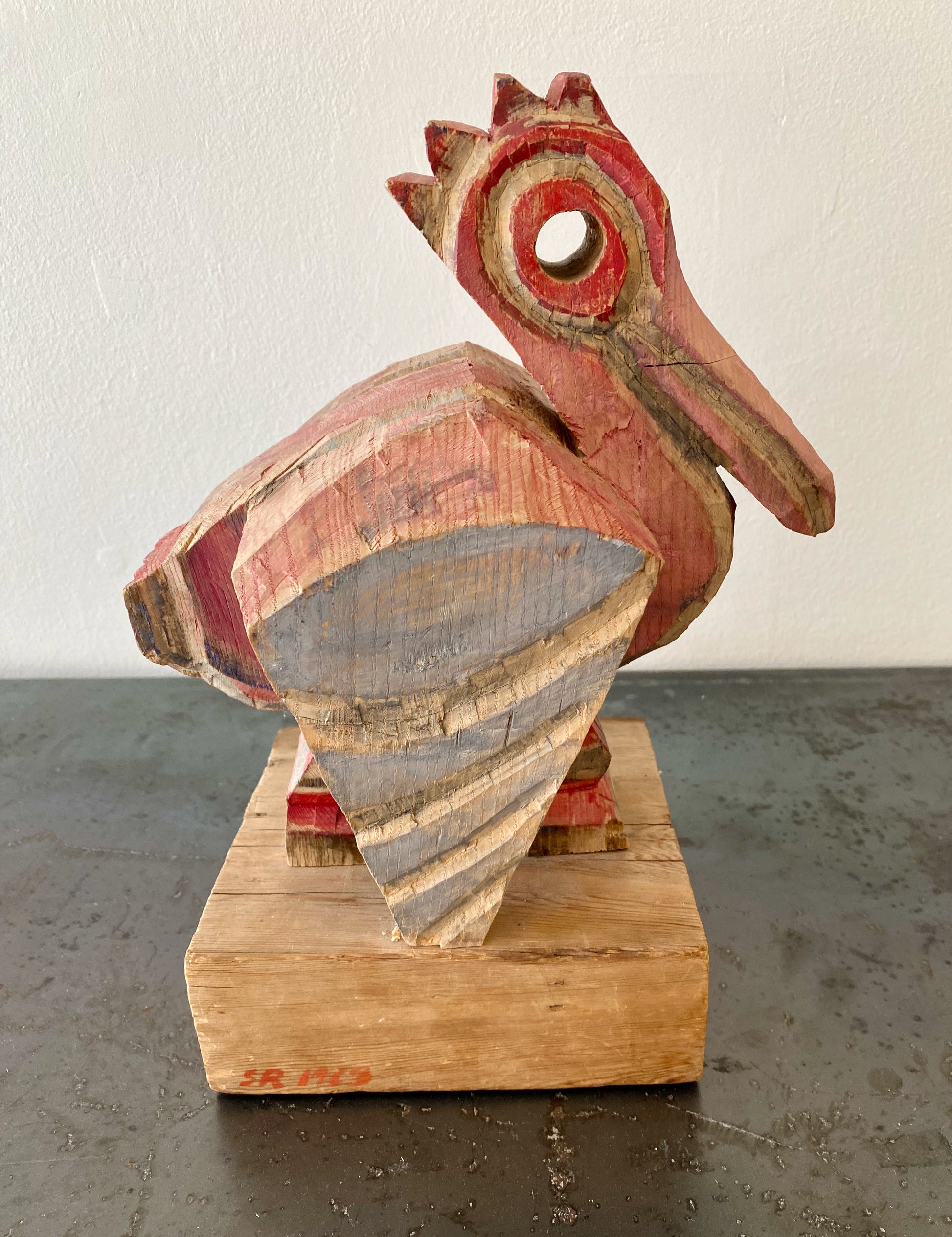 Staffan Roswall - Pelikan (bemålad träskulptur). Mått: Höjd: 31 c, bredd: 15 cm djup: 17 cm